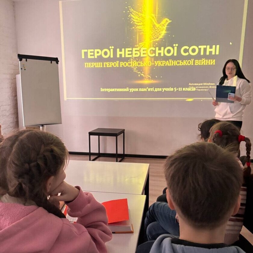 У бібліотеці на вул. Олександрівській, 51 відбувся урок пам’яті для дітей «А Сотню вже зустріли небеса…», присвячений вшануванню Героїв Небесної Сотні. Захід розпочався хвилиною мовчання на знак шани та вдячності тим, хто віддав своє життя за свободу і гідність України. Під час зустрічі діти ознайомилися з подіями Революції Гідності, дізналися про мужність і незламність українців, які стали на захист прав людини, демократичних цінностей та майбутнього держави. Говорили про значення понять «гідність», «свобода», «відповідальність», а також про те, чому подвиг Героїв Небесної Сотні назавжди залишиться важливою сторінкою новітньої історії України. Діти активно долучалися до обговорення, висловлювали власні думки та роздуми.