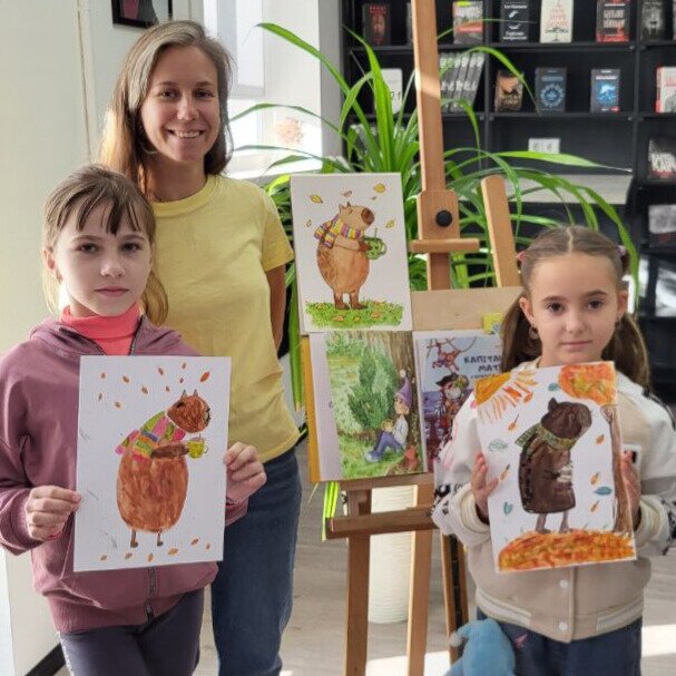 Лілія поділилася секретами своєї майстерності та провела для маленьких відвідувачів захопливий майстер-клас. Завдяки пензлям і акварелі юні читачі змогли відчути себе справжніми ілюстраторами дитячих книжок.