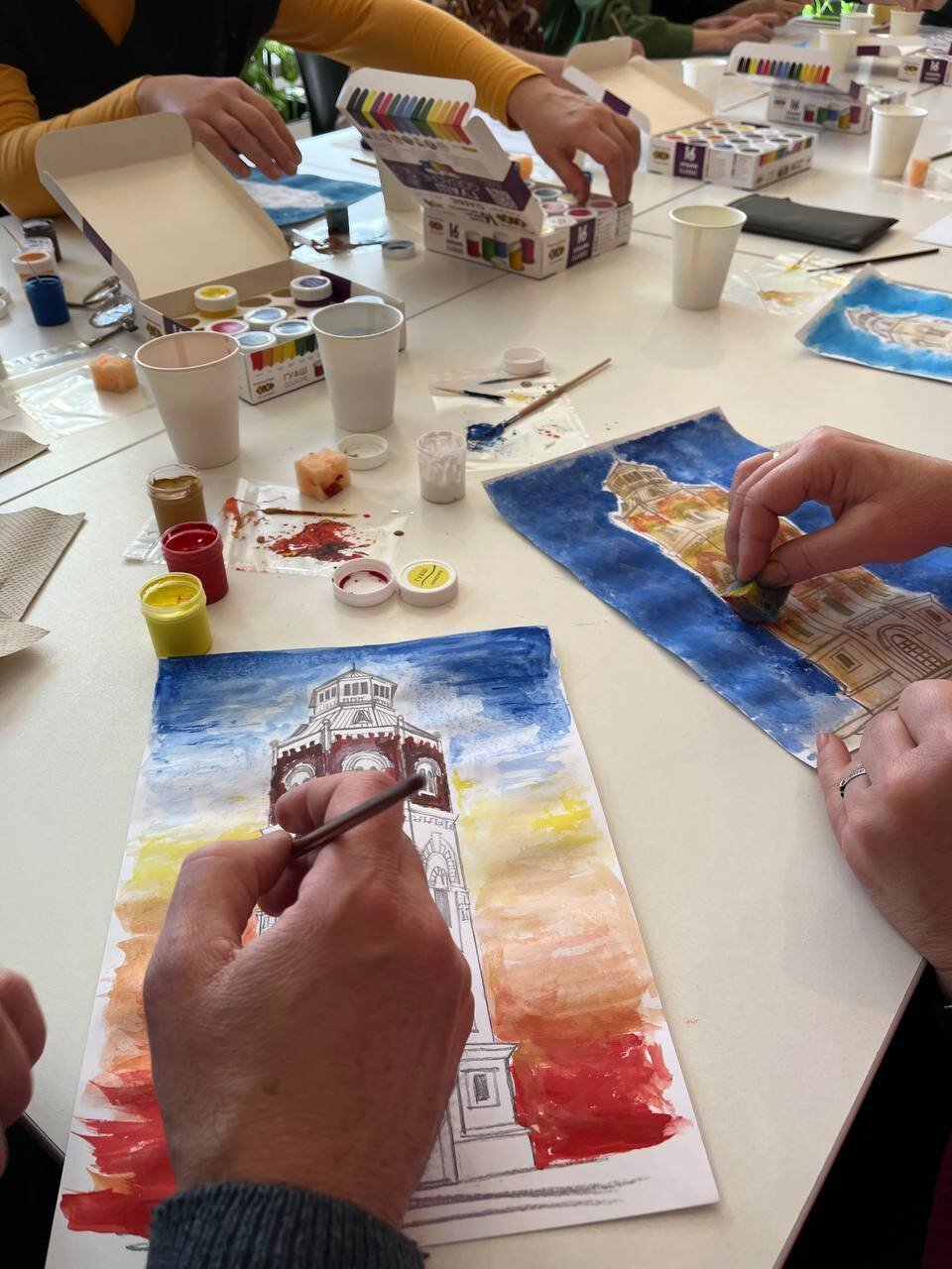 Організатором цього заходу стали наші партнери - БФ “ЯМаріуполь”, на чолі з талановитою Вікторією Телятник. Спільно ми заглибилися у світ архітектури та дізналися багато цікавого про творчість великого архітектора. А найцікавішою частиною було малювання однієї з найвідоміших маріупольських пам'яток - колишньої водонапірної вежі за проєктом Віктора Нільсена, разом з експертами та іншими учасниками.