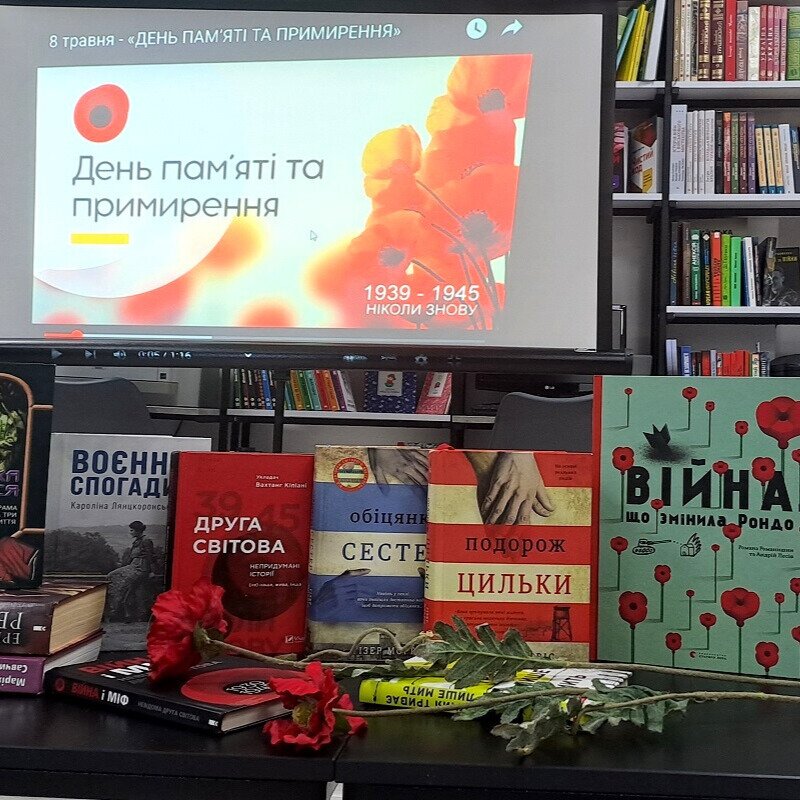 У бібліотеці по вул. Дмитра Вишневецького, 26 бібліотекарі провели тематичний перегляд літератури «Весни обірване суцвіття» і запропонували відвідувачам зануритися в історичні події Другої світової війни. Представлені матеріали вкотре нагадують, що ми не маємо морального права забувати тих, хто воював і здобував Велику Перемогу. Плин років не стирає глибокого сліду в серцях і вічний біль у народній пам’яті.