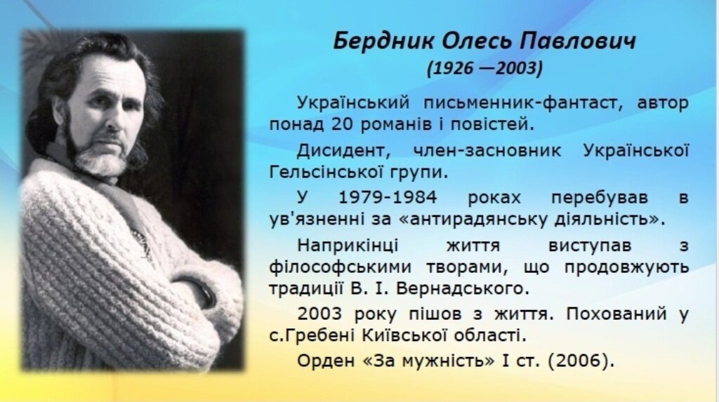 Є книги, які відтворюють дух часу. Вони становлять історичну спадщину людства. Є книги, які концентрують культурні змісти, належні якомусь народу. Вони є вмістом національної скарбниці. Є книги, що поєднують те й інше. Такі ми називаємо шедеврами, культурними подіями. До останніх належить і «Зоряний Корсар» Олеся Бердника.