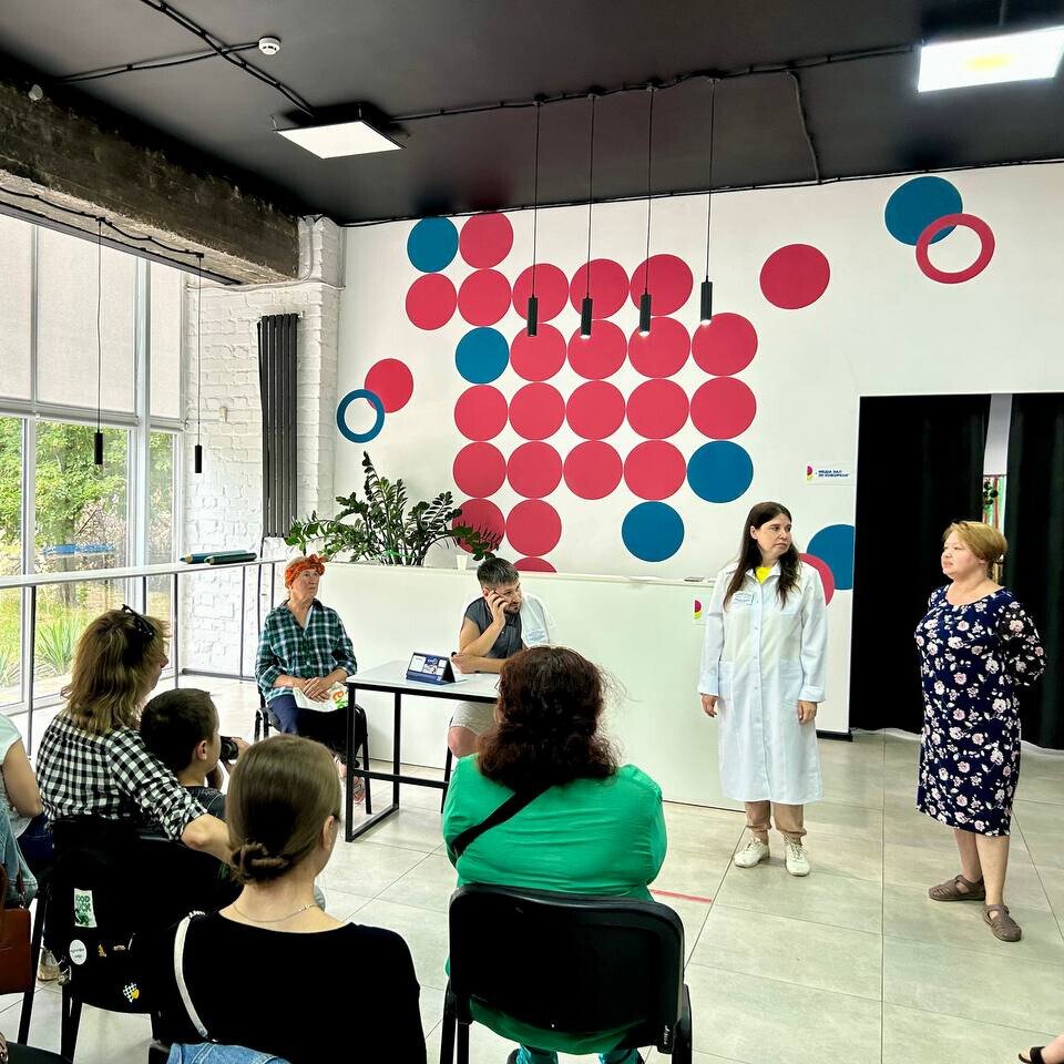 Група непрофесійних акторок на чолі з психологинею, джокеркою Школи театру пригноблених Анною Клименко провели форум-виставу для відвідувачів бібліотеки на вул. Запорізького козацтва, 17а. В рамках запропонованої вистави всі учасники займалися пошуком шляхів вирішення проблеми складної життєвої ситуації. Це можливість не лише спостерігати за історією, але й впливати на її розвиток, пропонуючи власні варіанти вирішення конфлікту.