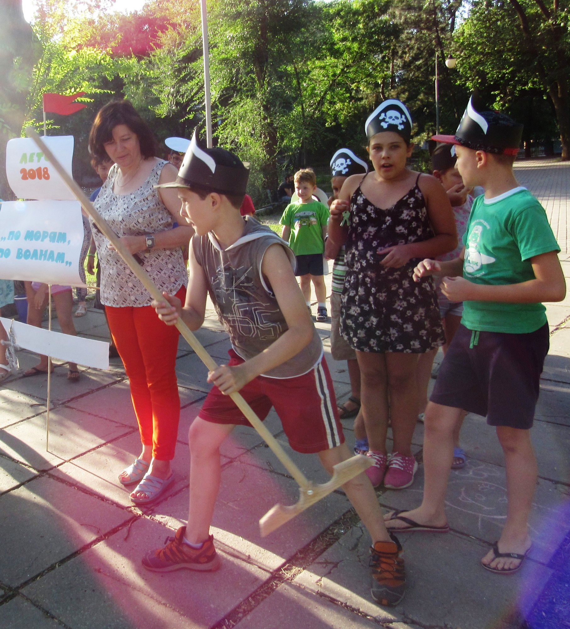 Веселий вечір «Казкові подорожі» розпочався літературно-музичною грою, а продовжився протиборством команд «Моряків» і «Піратів». Діти змагалися в «Морській» костюмованій естафеті, рухливих іграх, визначали найшвидших і спритніших, шукали «скарб»-прізи у квесті «Острів скарбів», згадавши історії з прочитаних книжок та виявивши кмітливість і ерудицію.