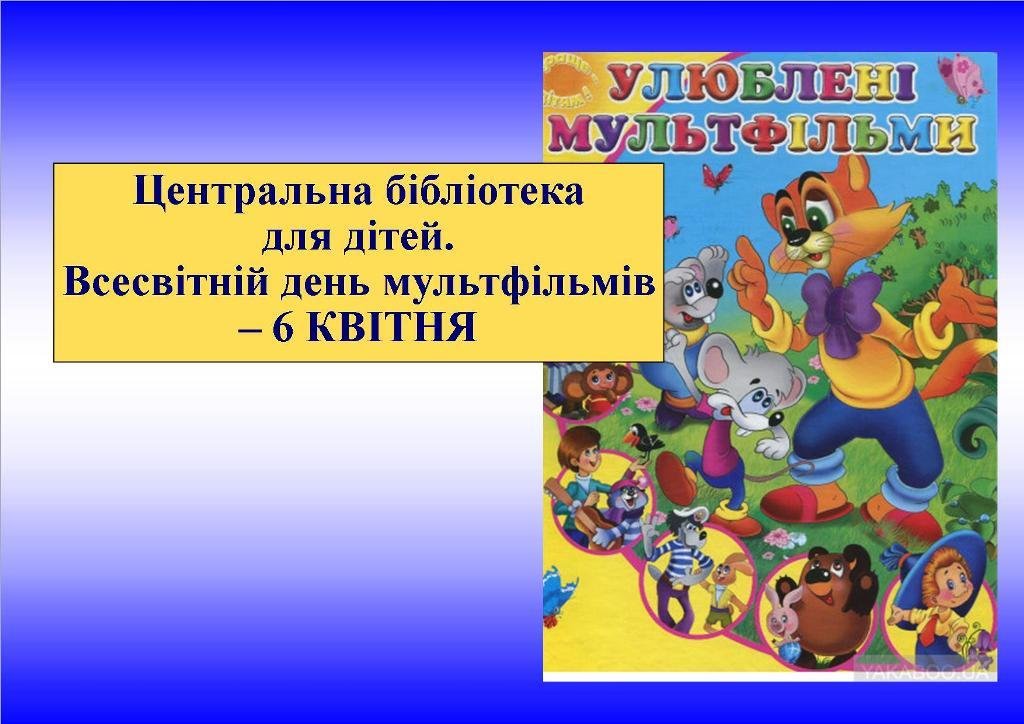 Центральна бібліотека для дітей (вул.Олександрівська,51, Олександрівський район) вітає всіх юних читачів з днем мультфільмів, адже, ми впевнені, що їх люблять всі!