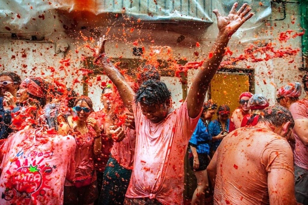 Кожної останньої середи серпня іспанське місто Буньйоль (Валенсія) перетворюється на справжнє томатне побоїще: люди кидають одне в одного помідорами, валяються у калюжах томатного соку і чавлять помідори ногами.