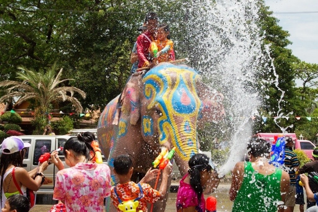 У водному фестивалі з радістю беруть участь навіть слони, які рясно обливають із хоботів усіх перехожих. Залишитися сухим у дні фестивалю в Таїланді просто неможливо!