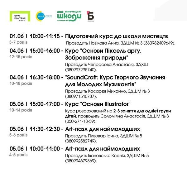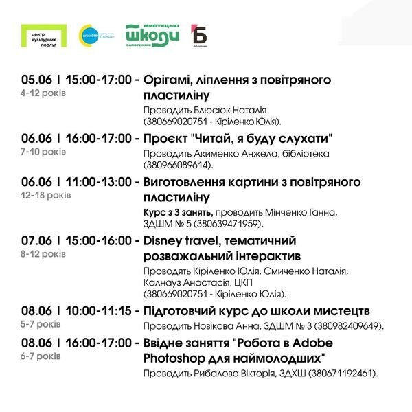 Тут зібрані всі основні дитячі сервіси та проєкти міжнародної організації, а також доєднались до заходів наші Бібліотеки Запоріжжя та Мистецькі школи Запоріжжя. Анонсуємо афішу на наступний тиждень, до 10 червня, включно