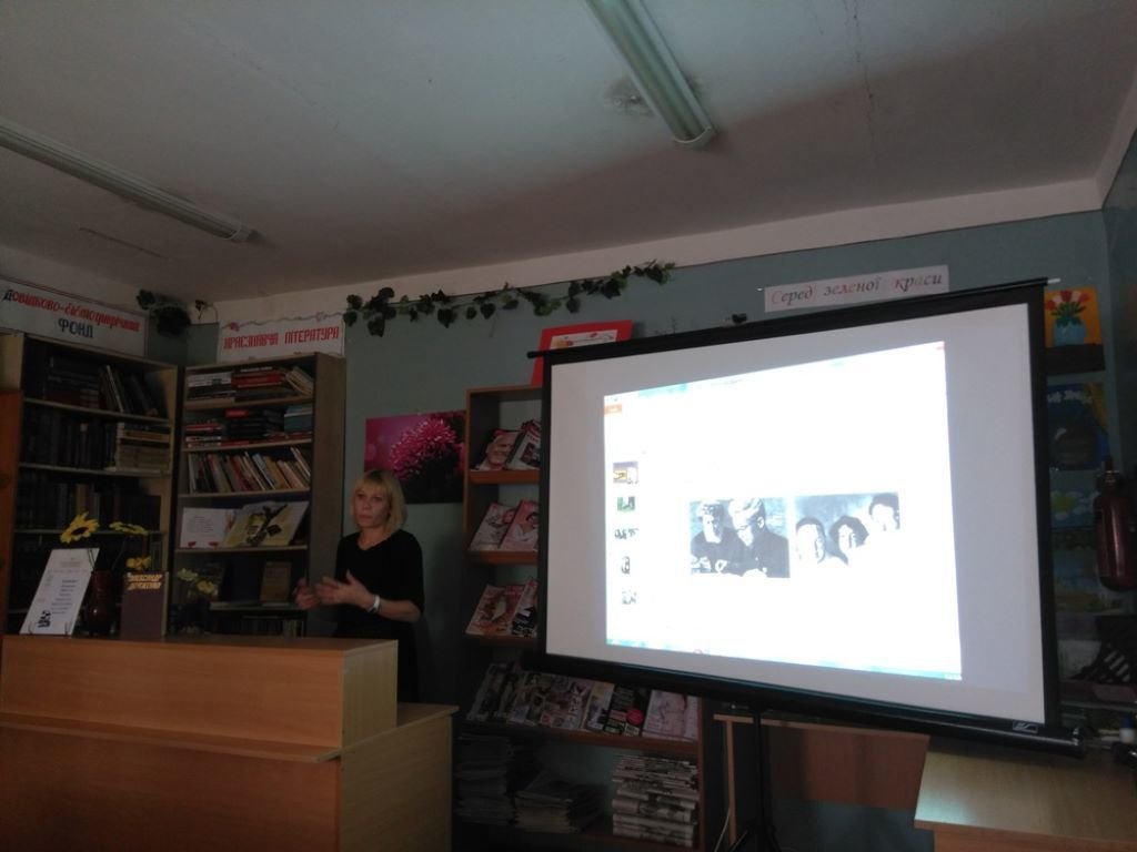 цікавістю познайомились з презентацією про ранні роки його життя. Бібліотекар Васьковська Тетяна Володимирівна представила багато цікавої інформації щодо маловідомих фактів життя О.Довженка та його сім'ї.