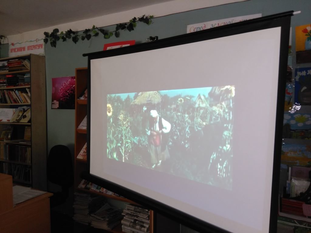 Гості бібліотеки залюбки переглянули найбільш вражаючі епізоди кінофільму «Зачарована Десна», створеного за кіноповістю О. Довженка, з