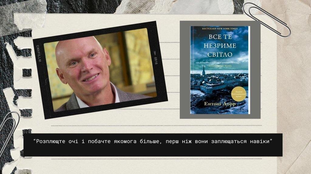 Зворушлива розповідь про сліпу французьку дівчинку Марі-Лор та сором’язливого німецького хлопчика Вернера, які намагаються вижити й врятувати близьких, коли навкруги вирує страшна Друга світова війна. Це вражаюча книга про дружбу і зраду, сирітство і батьківську любов та турботу. Книга про випробування та надію на те, що світло переможе навіть найглибшу темряву.