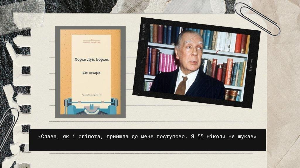 Сім розповідей про дослідження цінностей і сенсів. Одна з лекцій, представлена в книзі, називається «Сліпота». В ній автор аналізує свою сліпоту і життя з нею, адже сам втратив зір, як і його батько. Ця обставина цілком змінила його життя. Тим не менше, Борхес не полишив свою письменницьку, викладацьку і дослідницьку діяльність.