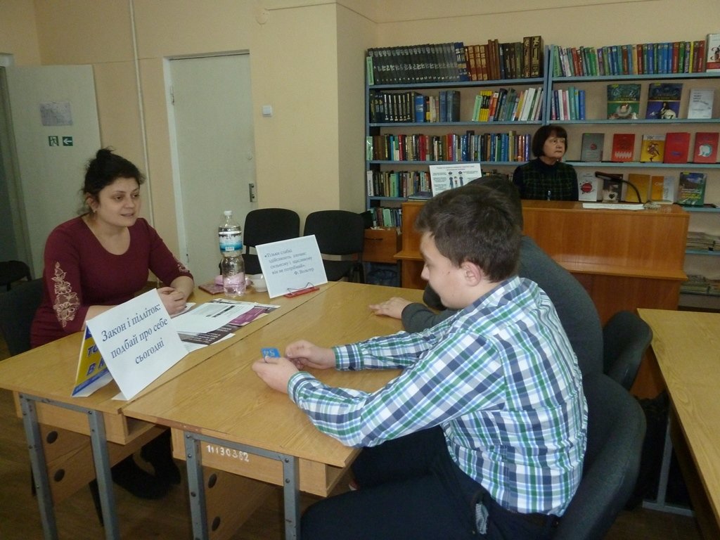 20 лютого в бібліотеці для дорослого населення №3 (вул.Василя Сергієнка,11, Хортицький район) відбулась бесіда-застереження «Закон і підліток: подбай про себе сьогодні», учасниками якої стали старшокласники загальноосвітніх шкіл Хортицького району.