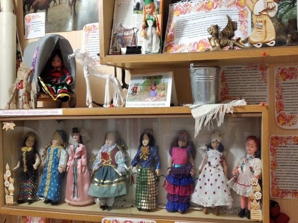 На експозиції представлено мапу Запорізької області з маркерами, колекцію авторських ляльок в національних костюмах та речі повсякденного вжитку наших предків, етнографічні книги та альбоми, казки різних народів.