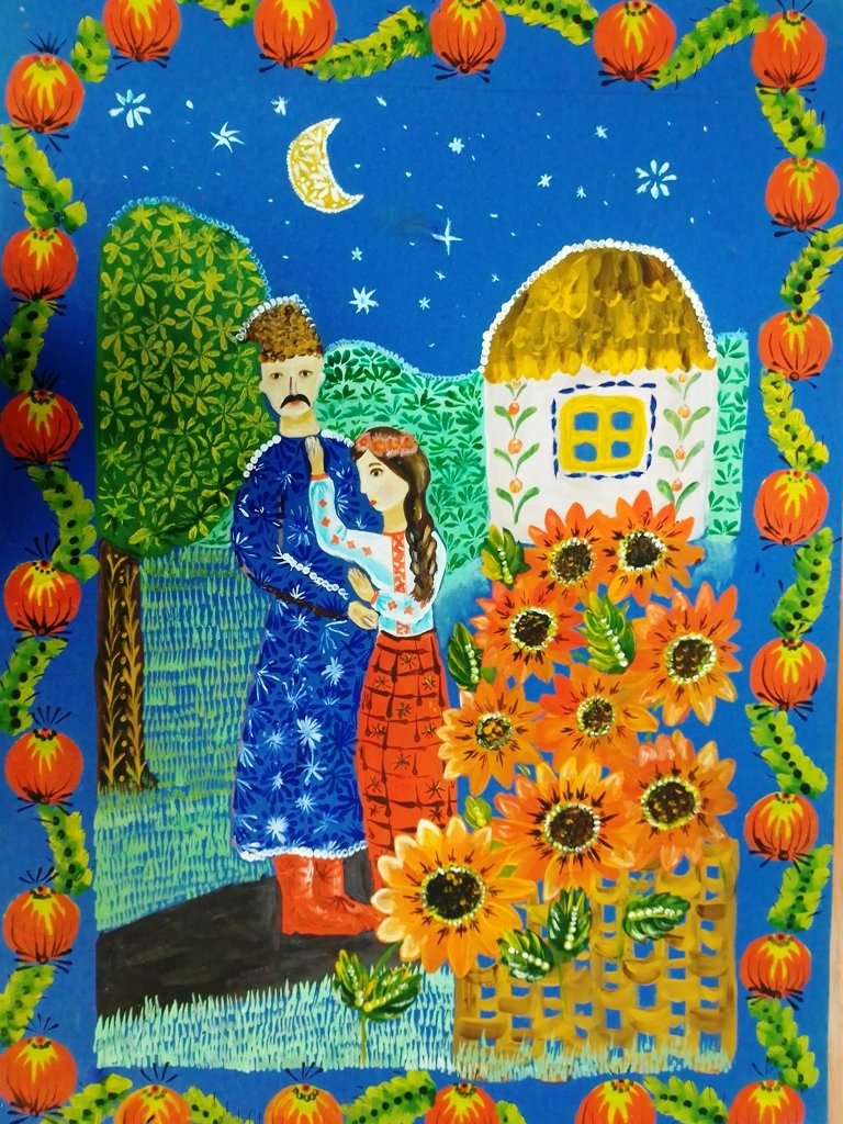 Вражає змістовністю і великою кількістю дрібних елементів сюжетний живопис Тетяни Келлер, Діани Башир та Світлани Писаренко, учениць Н.К.Катирєвої.