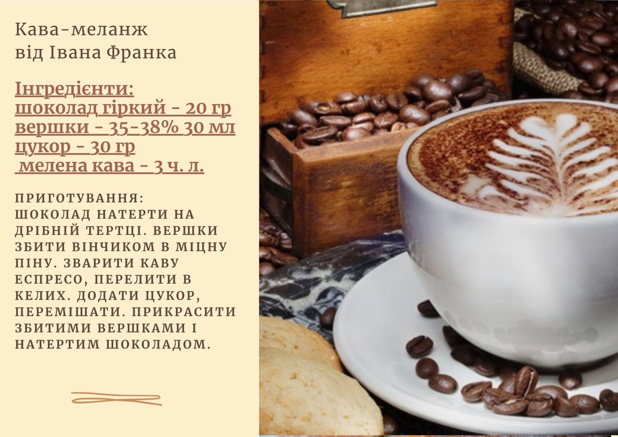 Із спогадів сучасників знаємо, що Франко полюбляв куховарити. Часто готував кулешу та компот. До того ж майстерно варив каву-меланж, так звану двоповерхову каву з, власне, кавою та молоком (або збитою сметанкою, вершками), до якої обов’язково мала бути свіжа випічка.