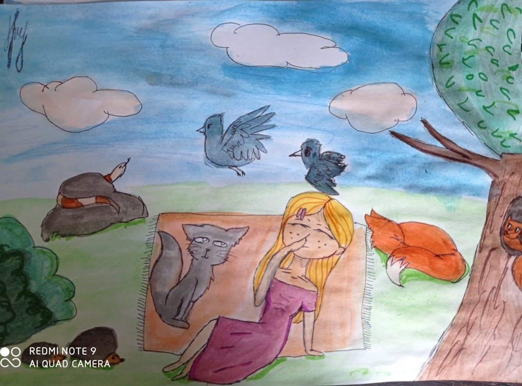 І місце отримала учасниця театральної студії «Карамелька» - Пророчук Євгенія. (роботу виконано кольоровими олівцями на форматі А3).