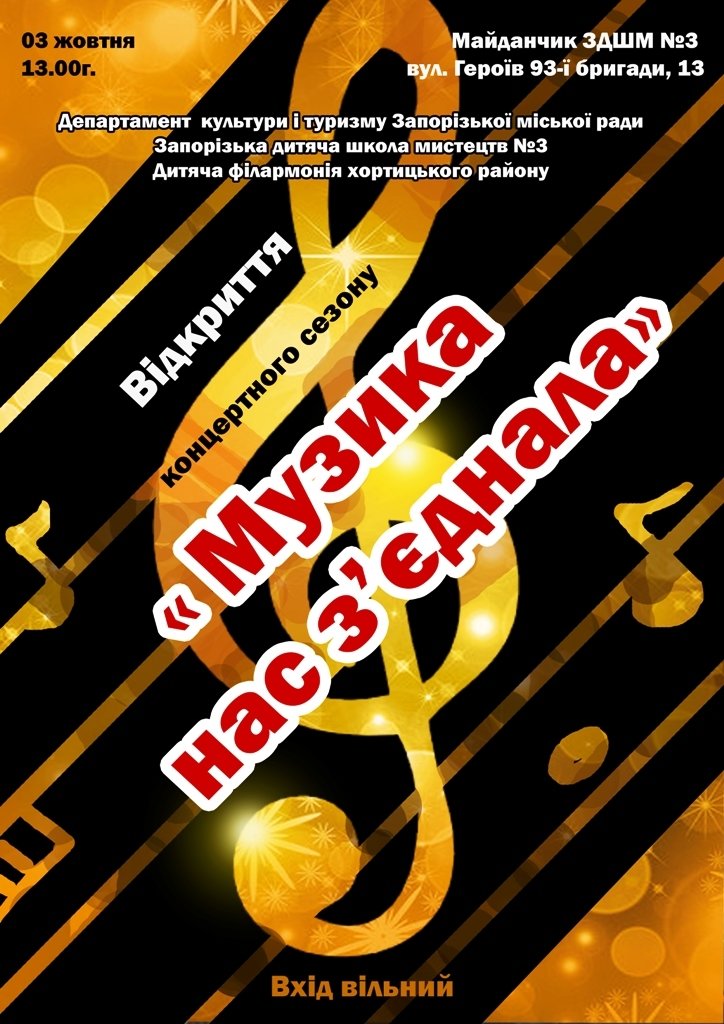 Департамент культури і туризму міської ради запрошує усіх глядачів та шанувальників музичного мистецтва відвідати концерт викладачів та вихованців дитячої школи мистецтв №3, яка розташована за адресою: вул. Героїв 93-ої бригади, 13.