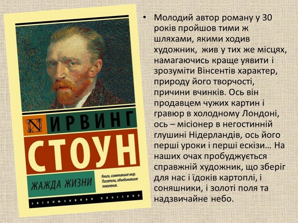 Перше дослідження в цьому плані – «Жага життя» І. Стоуна.