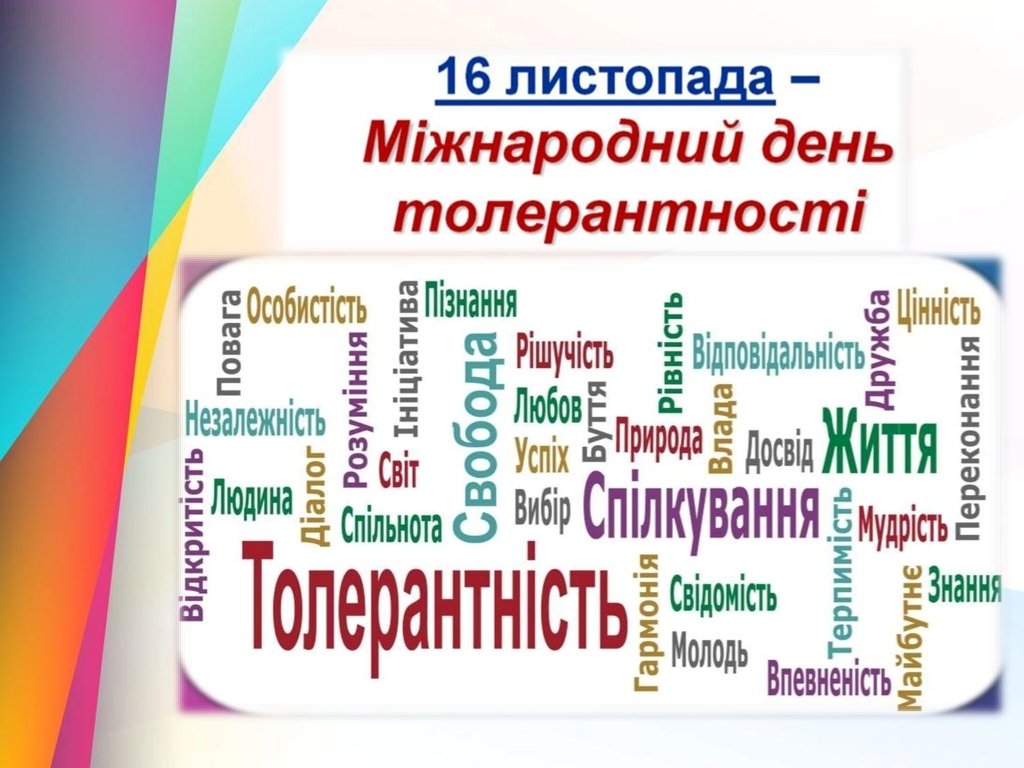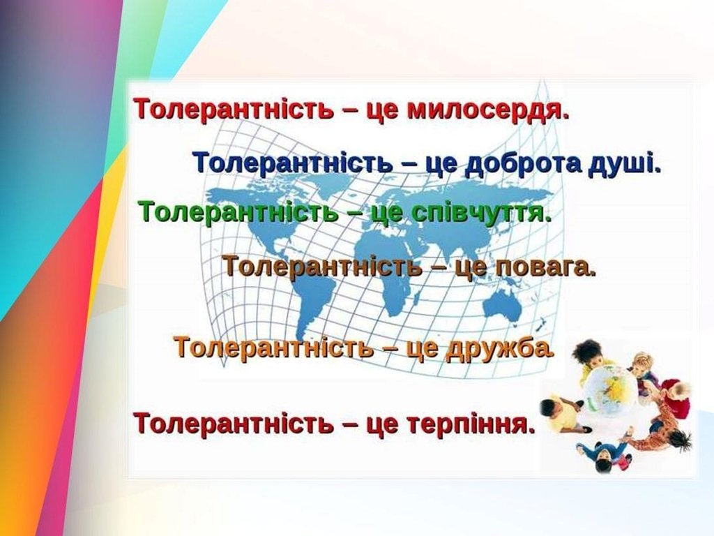 Толерантність… Як мало в цьому слові для серця українця. Сьогодні воно сприймається багатьма як заморська дивина. Але з часом воно отримає прописку і в нашій мові, і в нашій свідомості.