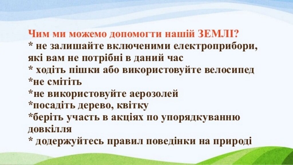 Останнім часом природа не стільки радує нас своєю первозданною красою, скільки лякає слідами діяльності людини. Екологічних проблем дуже багато: знищуються зелені легені Землі, розростаються звалища сміття... Зрозуміти такі проблеми та отримати різносторонні знання про наше довкілля допомагають нашим читачам працівники бібліотеки, які нагадують дітям та дорослим про правила поведінки на природі.