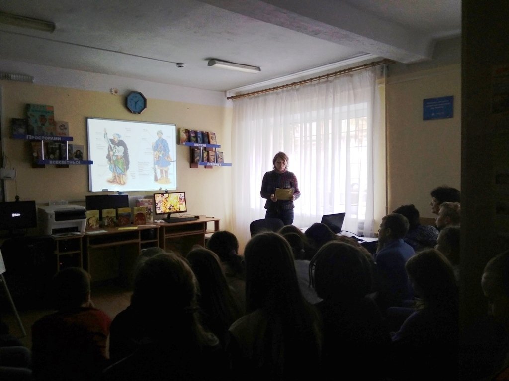 Бібліотечна година історії пройшла у форматі захопливої розповіді, ілюстрованої слайдами і відео. А змагання між командами школярів та веселі ігри дозволили перевірити всім свою влучність, спритність та кмітливість.