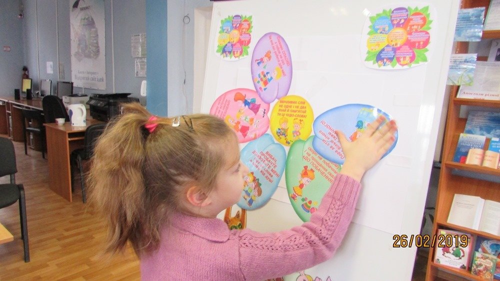 Бібліотекарі познайомили дітей з поняттям «ввічливість», «доброта», провели бесіду про необхідність вживання у мові «ввічливих» слів.