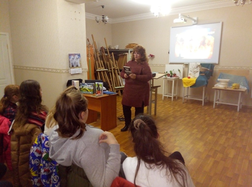 У формі відеопрезентації бібліотекарі розповіли присутнім про події двох революцій: Помаранчевої революції (2004 року) та Революції Гідності (2013 року). Учням художньої школи також було запропоновано знайомство з викладкою літератури «Назавжди воїни і патріоти».