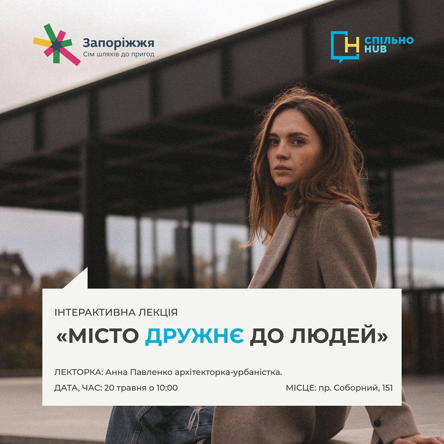 Місто дружнє до людей - яке воно? Про це з гостями зустрічі вестиме діалог архітекторка-урбаністка Анна Павленко.