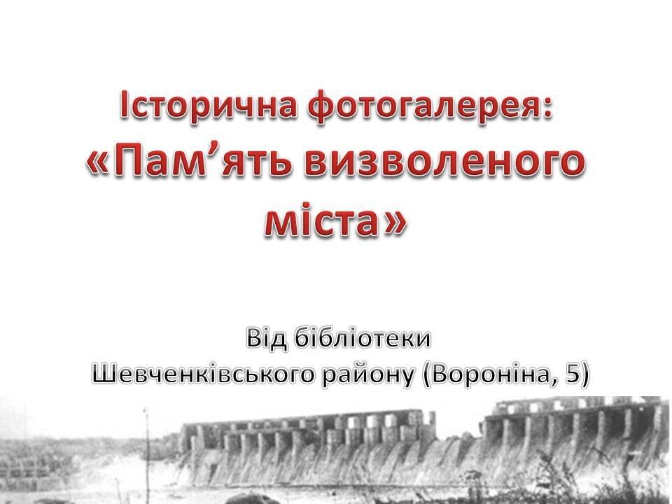 Історична фотогалерея «Пам’ять визволеного міста» від бібліотеки Шевченківського району (вул. Вороніна, 5) містить фотодокументи, які дозволяють нам краще уявити події того часу.