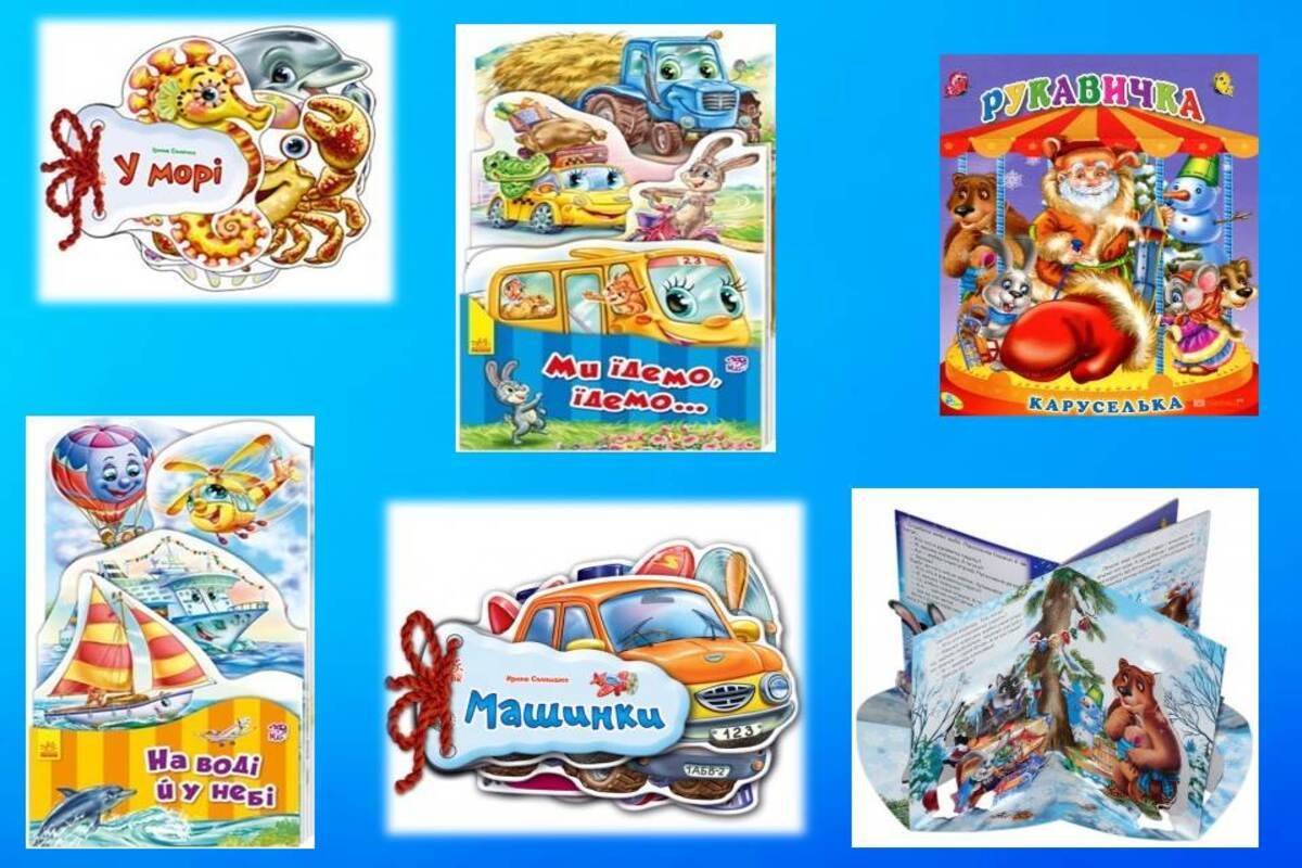 Це невеличкі книжечки для дітей, які і своєю формою, і змістом дуже подібні іграшкам, з якими малеча любить проводити свій час. Картонні панорамки, карусельки, розкладайки, книжки-загадки з віконечками неодмінно привернуть увагу маленьких читачів.