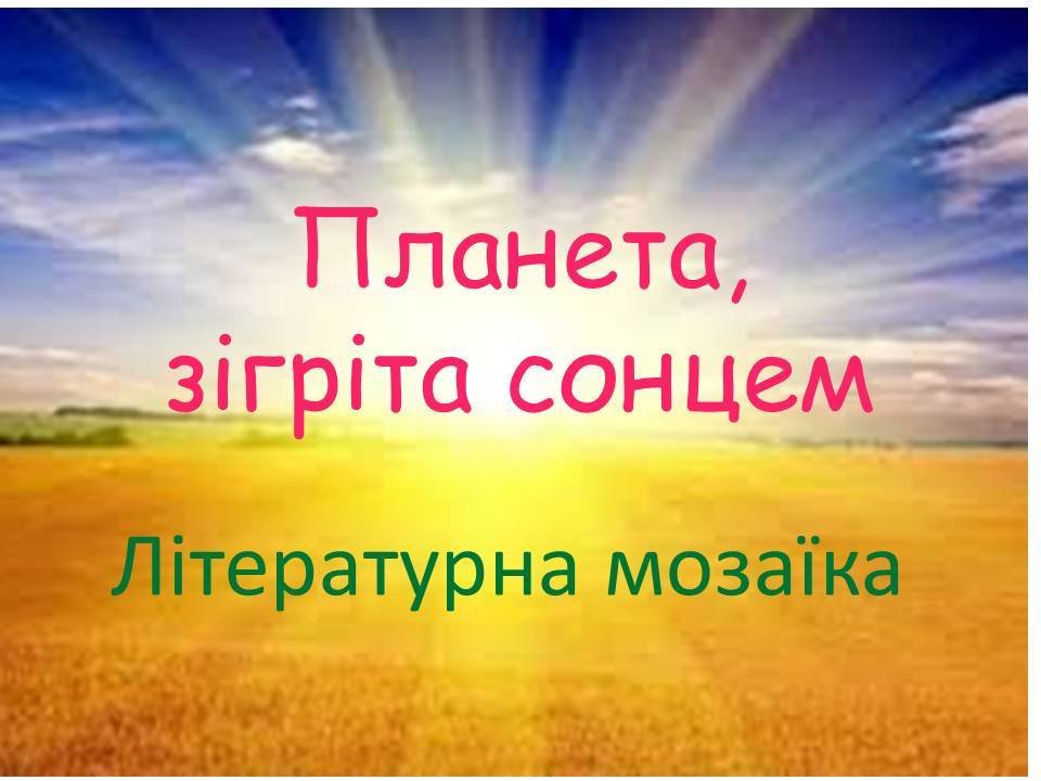 З нагоди Всесвітнього дня охорони навколишнього середовища, який відзначається 05 червня, бібліотека для дорослого населення № 3 (вул.Василя Сергієнка,11, Хортицький район) презентує літературну мозаїку «Планета, зігріта сонцем».