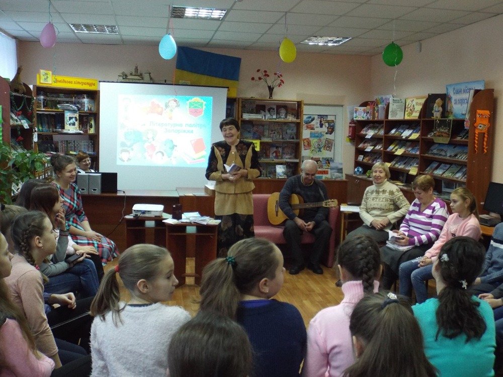 03 грудня до бібліотеки для дітей №6 (вул.Комарова,9, Комунарський район) на бібліознайомство «Літературна палітра Запоріжжя» завітали саме такі гості: Лорина Діодорівна Тесленко, талановита запорізька поетеса, керівник запорізького літературно-художнього об’єднання «Пошук», член національної спілки письменників України, члени правління цього літоб’єднання, поетеси – Тетяна Осінь та Ольга Суслова, запорізький бард, прозаїк – Анатолій Яцук.