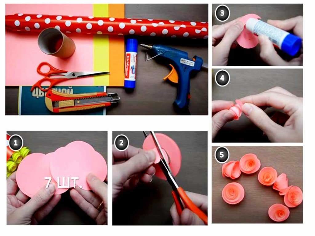 Керуючись інструкцією починаємо роботу. З паперу вирізаємо форму для квітів – коло. Кожне коло вирізаємо по спіралі. Наносимо клей на заготовку і формуємо квітку.