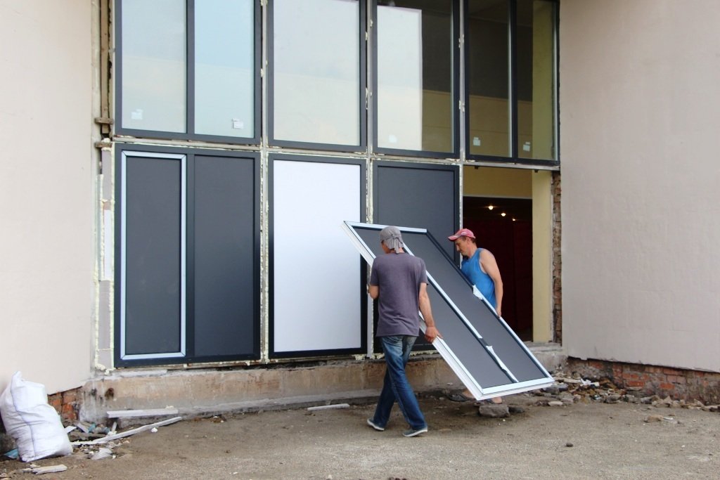 У Хортицькому районі Запоріжжя триває реконструкція палацу культури «Хортицький». Місцева влада вирішила виконувати її в три етапи. Реконструкція стартувала минулого року з ремонту концертного залу. Цього року продовжують роботи всередині, почали ремонтувати фасад. Будівельники міняють вікна, реставрують стіни, фарбують їх у яскраві кольори згідно з дизайнерським проектом.