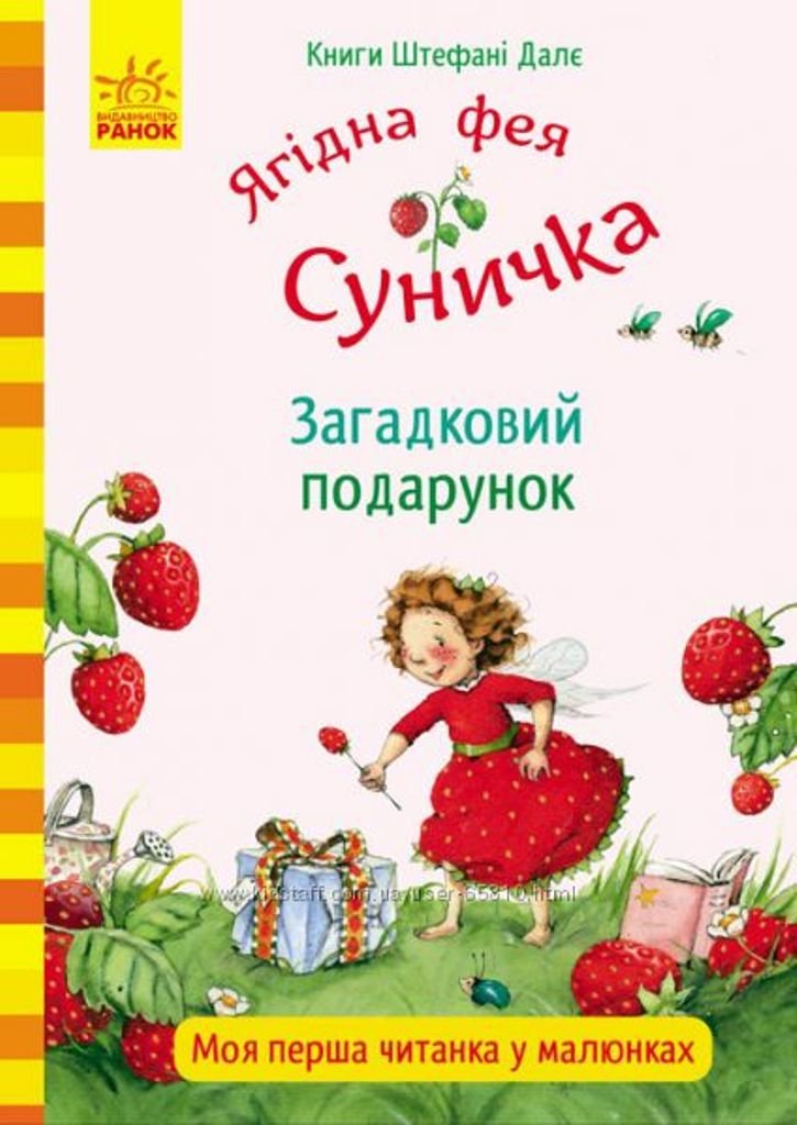 1. Ш. Далє. Ягідна фея Суничка. Загадковий подарунок. Одного дня перед будиночком-чайником феї Сунички з’явився загадковий подарунок — коробка з великим бантом. Що б це могло бути? Фея розкрила коробку та знайшла... маленьку хмаринку, яка виглядала наче бджола. Та от лихо! Хмаринка вирвалась із коробки й одразу почала бешкетувати. Що робитиме фея Суниченька, і чи вдасться їй потоваришувати з бешкетнецею?