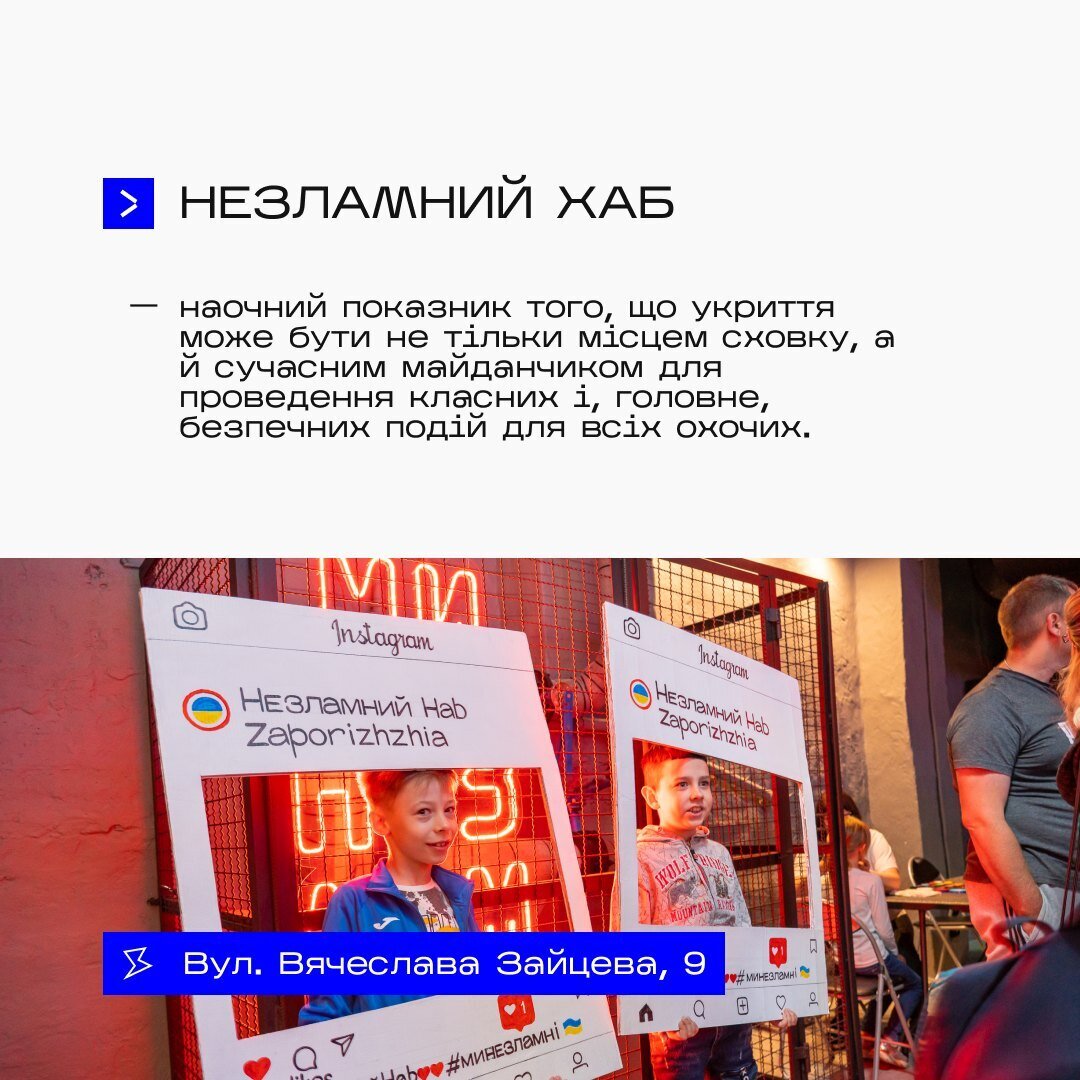 З червня у Запоріжжі відкрилося укриття абсолютно нового рівня — Незламний Хаб. Це не просто сховище для запоріжців під час повітряної тривоги, а й локація для організації різножанрових заходів, до яких можуть долучитися абсолютно всі. [gallery type=1 id=19042] [gallery type=1 id=19039] [gallery type=1 id=19038] [gallery type=1 id=19041] [gallery type=1 id=19037] [gallery type=1 id=19036] [gallery type=1 id=19040] [gallery type=1 id=19035] [gallery type=1 id=19043]