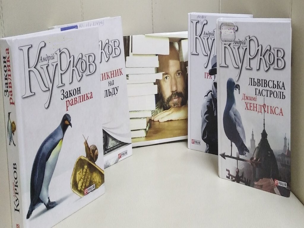 У бібліотеці Дніпровського району (вул.Добролюбова,11) у наявності є видання творів Андрія Куркова, які зацікавлять як шанувальників пригодницької, історичної, так і філософської та фантастичної літератури: