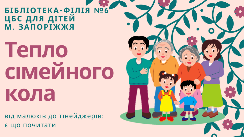 Бібліотека для дітей №6 (вул.Комарова,9, Комунарський район) пропонує вашій увазі добірку книг, у яких важливу, а подекуди і головну роль грають родини.
