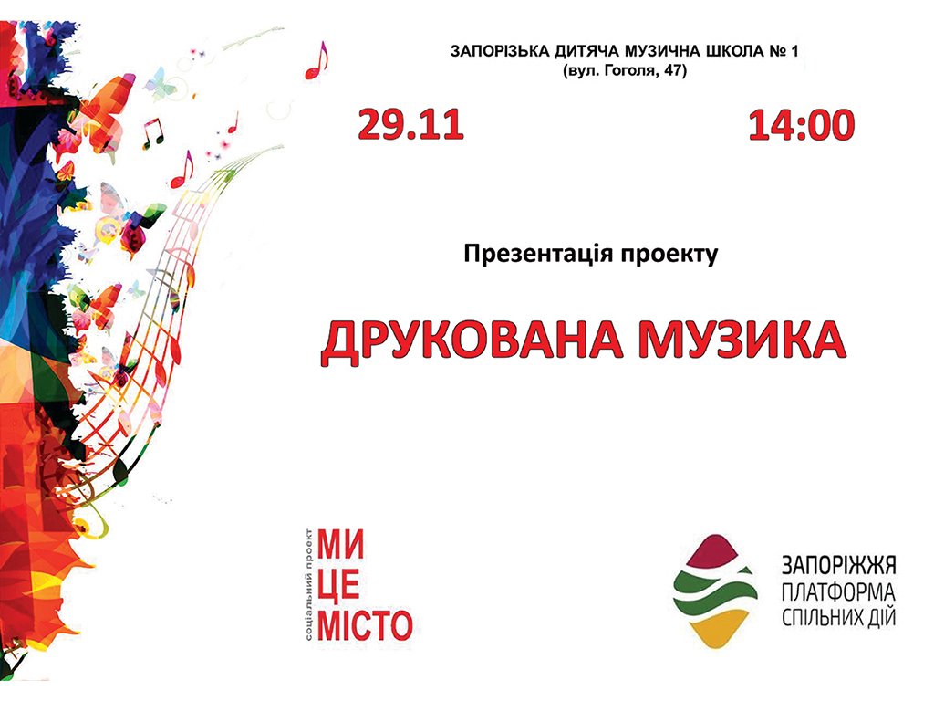 «Друкована музика» — це спільний проєкт дитячої музичної школи №1 та громадської організації «Центр реформ, демократії та права», реалізований завдяки конкурсу соціальних ініціатив «Ми – це місто».