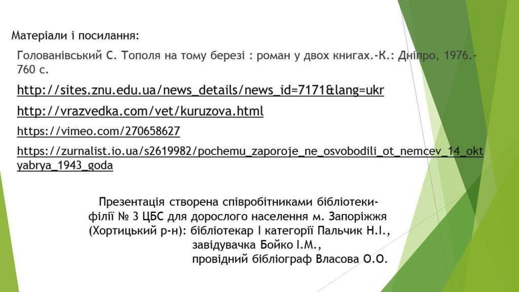 Бібліотека для дорослого населення №3 (вул.Василя Сергієнка,11, Хортицький район) представляє відеокалейдоскоп «Пройшла війна стежками долі».