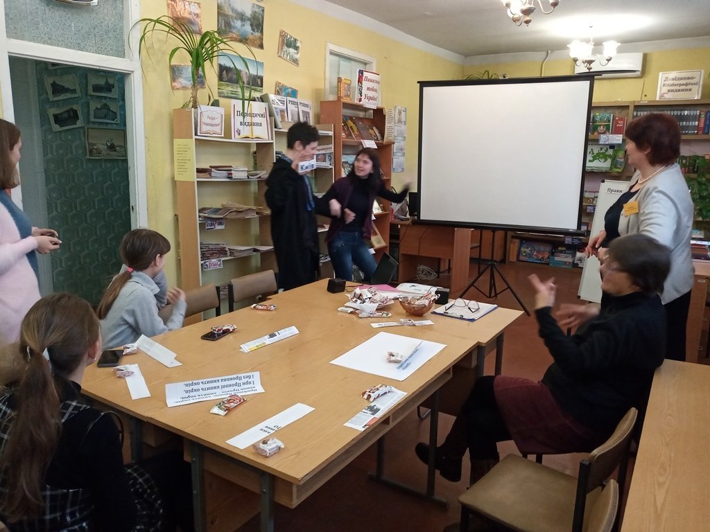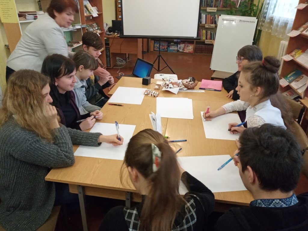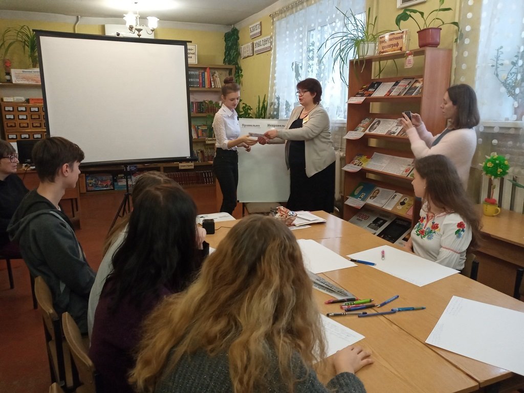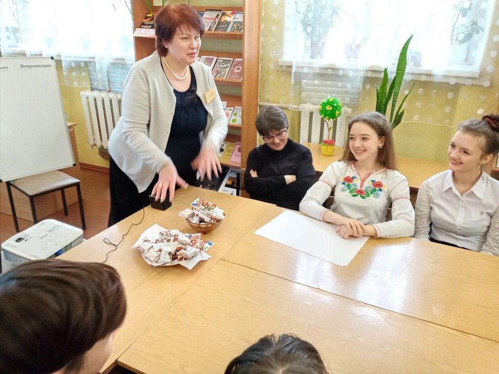Для юних українців бібліотекарі приготували багато практичних завдань для "шліфування" української мови. Підлітки читали скоромовки, вчилися говорити грамотно, оформлюючи дошку «Правильно - неправильно», писали дует-диктант, підбирали синоніми і дивувалися виразності нашої мови. Не обійшлося і без розваг – вгадували українські прислів’я у пантомімах, які представив швидко організований експрес-театр. Посміялися разом над «суржиковим полем» в українській мові, переглядаючи славнозвісний монолог Голохвастова із кінострічки «За двома зайцями».