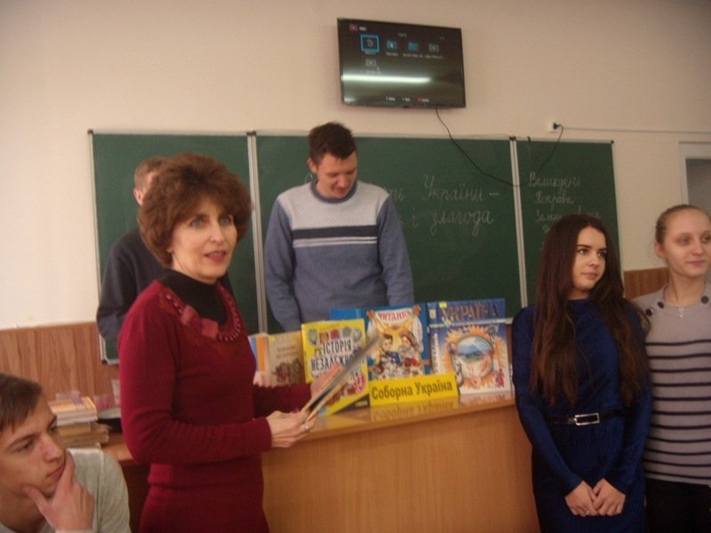 З нагоди цієї важливої історичної дати працівники бібліотеки для дорослого населення №3 18 січня завітали до ЗОШ № 32, де провели годину історичної пам’яті «Соборність – це єдність і злагода». Учасниками заходу стали учні 10 класу.