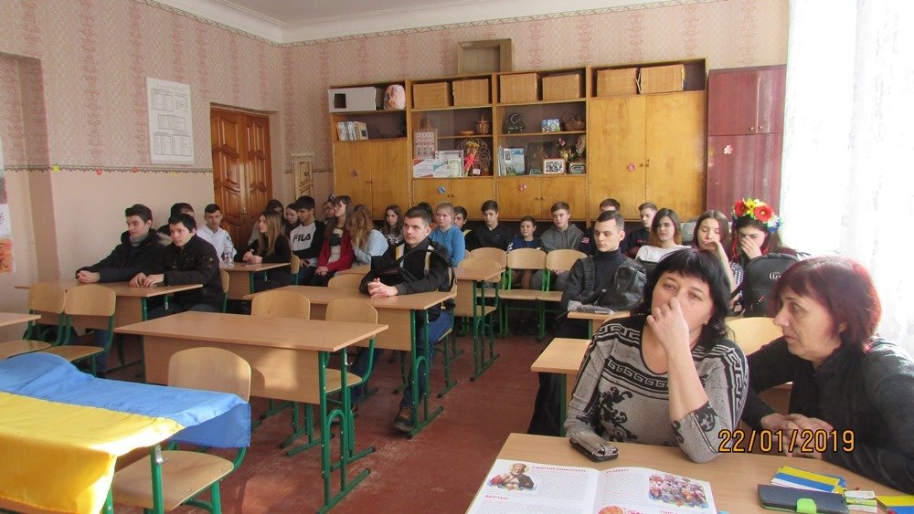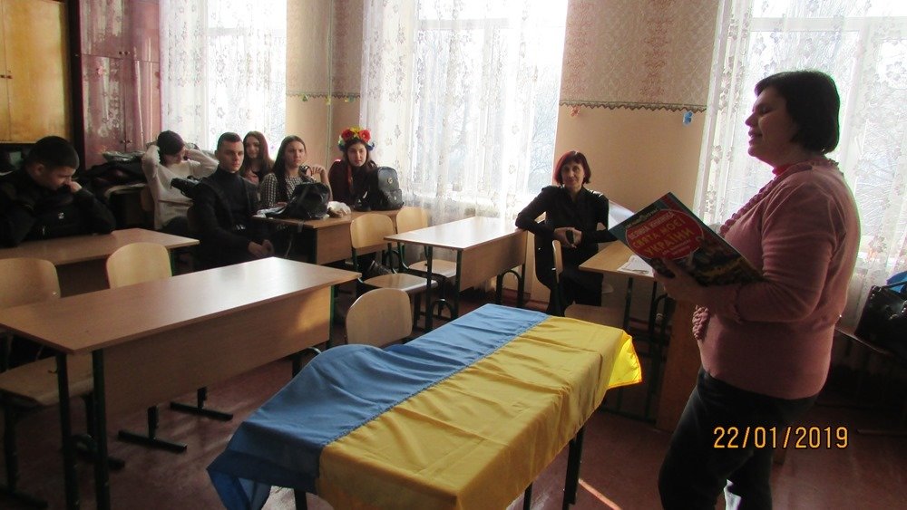 22 січня працівники бібліотеки для дорослого населення №13 (вул. Автобусна, 9, Заводський район) провели урок державності «Соборність України – запорука єдності держави». Захід відбувся на базі ЗОШ № 36 за участю учнів 10-11-х класів.
