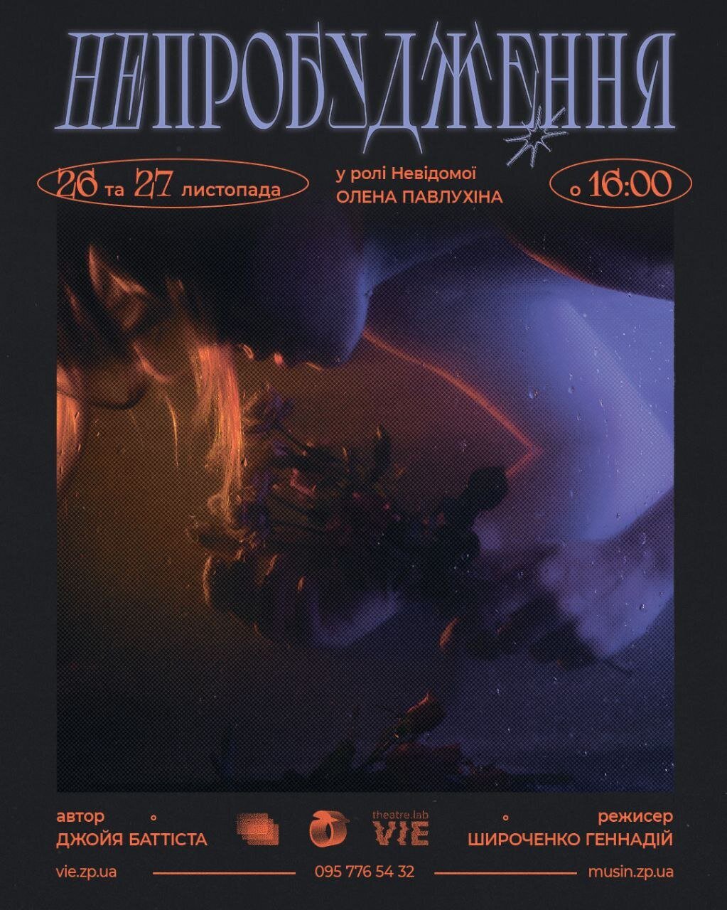 26 та 27 листопада театр-лабораторія Vie презентує новий спектакль – монодраму «Непробудження». Це буде друга премʼєра з початку повномасштабного вторгнення. Творча команда розпочала роботу над проєктом ще у серпні, але через посилення ворожих обстрілів репетиційний процес кілька разів зупинявся.