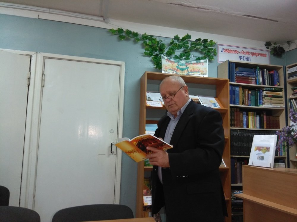 Тепло і жваво пройшло спілкування гостей бібліотеки. Володимир Красильников розповів про свій творчий шлях, читав свої вірші з нової збірки «Волошкове кохання».