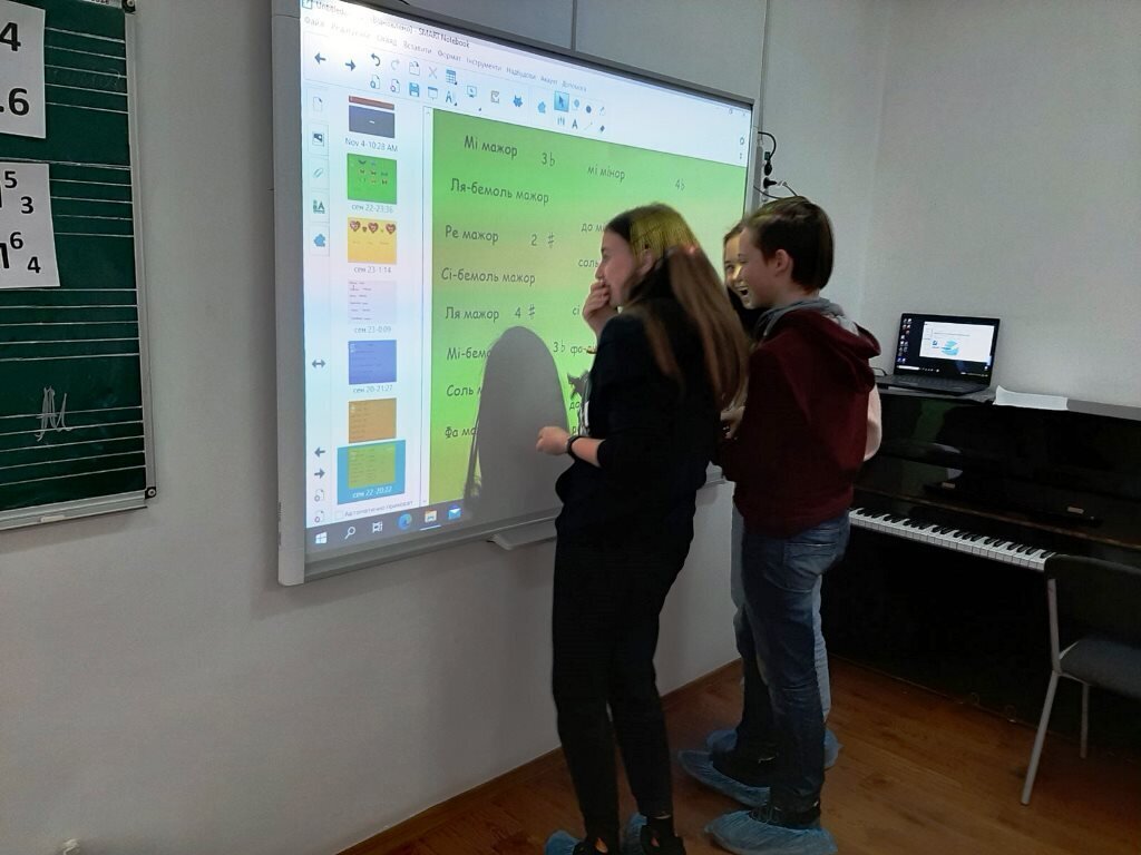 Діти з захопленням відповідали на питання, знаходили і з'єднували відповідності, впізнавали музичні форми за асоціаціями та розгадували відео-питання. Працювали у творчій атмосфері, показали особисту зацікавленість, рівень знань, умінь, напрацювань, які вони досягли не тільки на групових уроках, а й з використанням своїх інструментів - фортепіано, скрипки, співу.