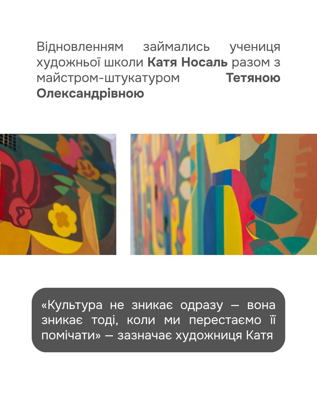 Художниця — учениця художньої школи Катя Носаль разом з майстром-штукатуром Тетяною Олександрівною створили справжню магію та відновили частинку нашої історії.