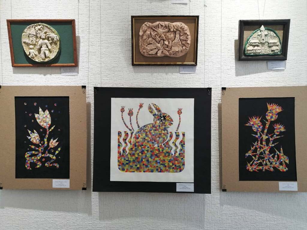 Учні Рибалової В.В. виконали цікаву колективну роботу - триптих (витвір мистецтва, який складається з трьох картин, барельєфів та інших художніх творів, об'єднаних спільною ідеєю) “Першоцвіти - Заєць - Терник”, в якій вони вирішували виразність та взаємозалежність форми і фактури.