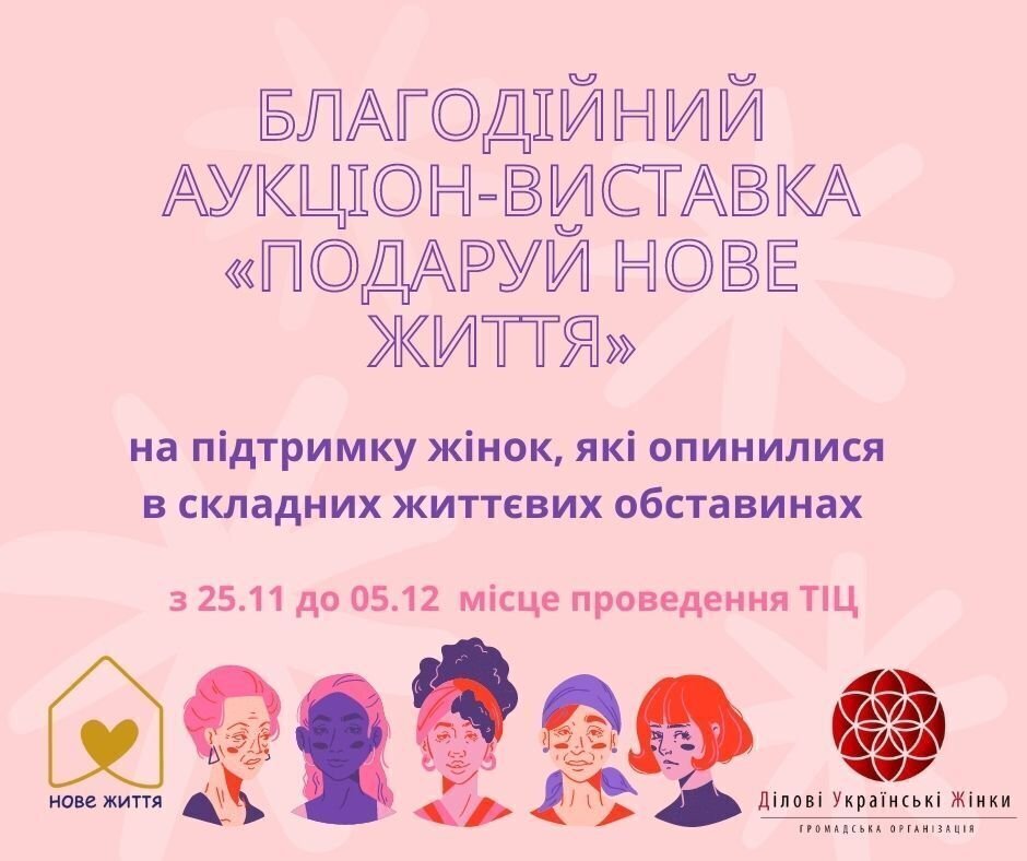 25 листопада о 16.00 у Туристичному інформаційному центрі відбудеться благодійний аукціон-виставка «Подаруй Нове Життя». ГО "Ділові Українські Жінки в Запорізькій області» та соціальне підприємництво «Нове Життя» організовує цей благодійний захід.