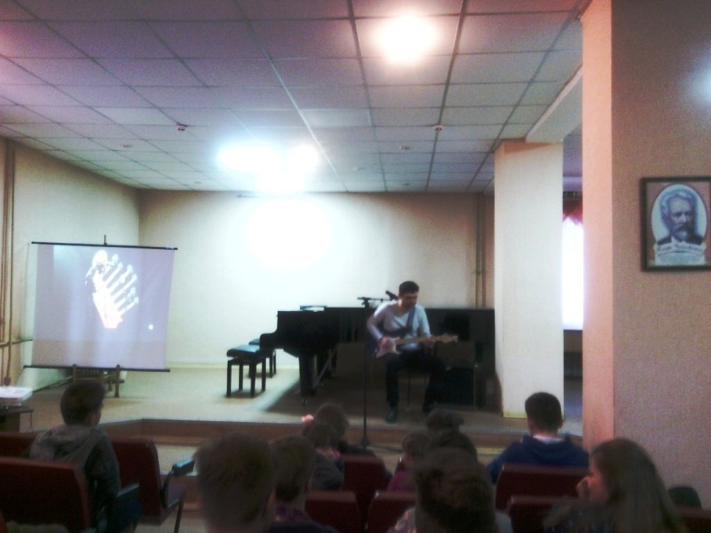 Аліна Анатоліївна познайомила учнів Закладу загальної середньої освіти №75 та школи-інтернату «Світанок» з електрогітарою. Діти почули цікаві історії про історію її створення, були вражені від звуків першої електрогітари «сковорідки» як тоді її називали. Згадали кращі рок-гурти та їх кращих солістів. Справжній вибух емоцій спричинила демонстрація різномаїття рок-стилів у виконанні викладача Мартинкяна Романа Володимировича.
